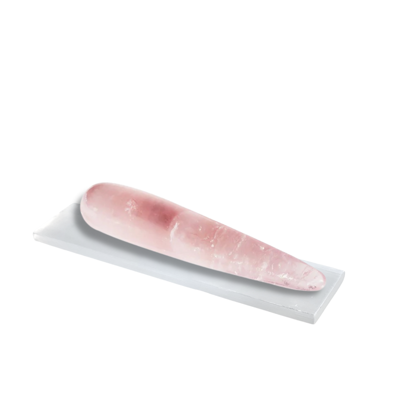 The Yoni Wand is used to give yourself (or your partner) a sensual yoni massage. Unlike yoni eggs, you still have contact with the crystal while it's inside of you—making the wand a powerful tool for working with yourself and specific easily accessible points.