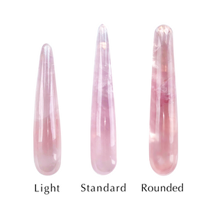 The Star Rose Quartz Yoni Wand is usedto enhance awareness of physical sensation and assist in the alignment of mind, body, and spirit during meditation and self-love rituals. The wand can be used for self-pleasuring and/or trauma-release by yourself or with a partner. Wand measures: Radius 1" length 5-6" crystals will vary slightly in size and length. This is our slightly lighter wand, it is about 1-1.5" shorter in length from the standard Star Rose Quartz Yoni Wand.